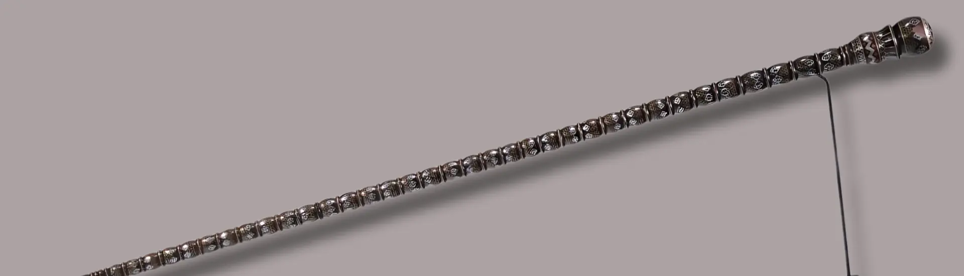 •فلزکوبی یا خاتم: نصب قطعات فلزی (نقره، برنج) یا طرحهای خاتمکاری در بخشی از عصا، باعث ارزش و زیبایی افزون میشود.