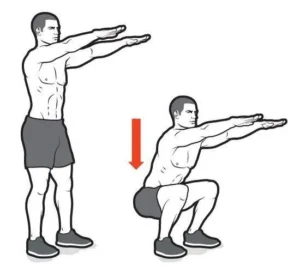 حرکت سوم: نشست و برخاست نیمه (Half Squat)