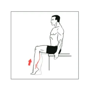 2.یکی از پاها را بهصورت نشسته صاف کنید تا زمانی که زانو تقریباً صاف شود و پاشنه کمی از زمین بالاتر بیاید.