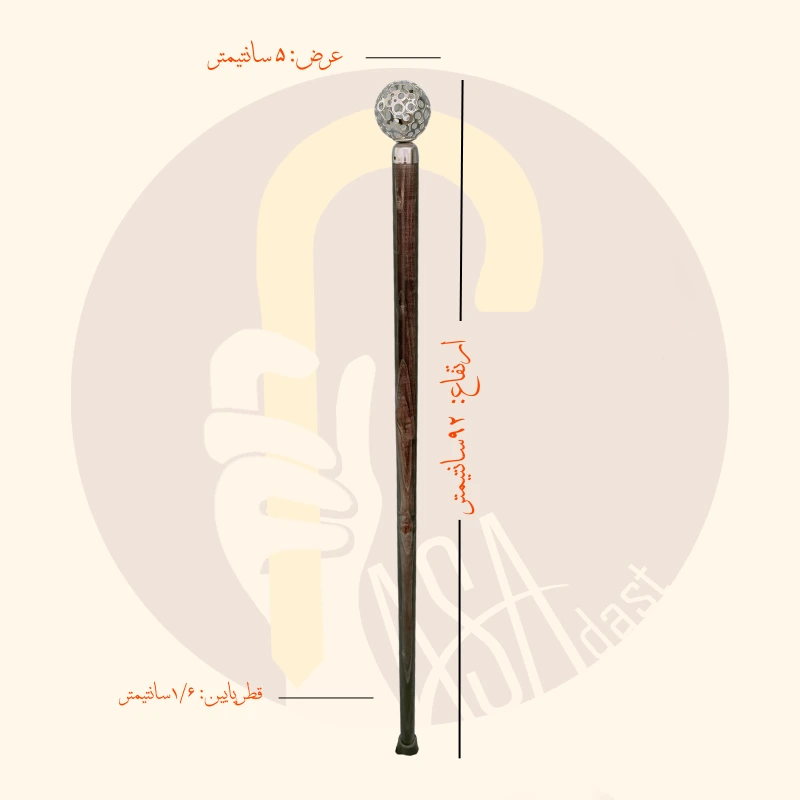 دسته تزیینی فلزی از جنس آهن، علاوه بر جلوهای خاص و متفاوت، نقش مهمی در افزایش استحکام و تعادل عصا ایفا میکند. طراحی ارگونومیک دسته با سه فرورفتگی سوسیسیشکل باعث قرارگیری بهتر انگشتان، کنترل دقیقتر و کاهش خستگی دست در زمان استفاده میشود.