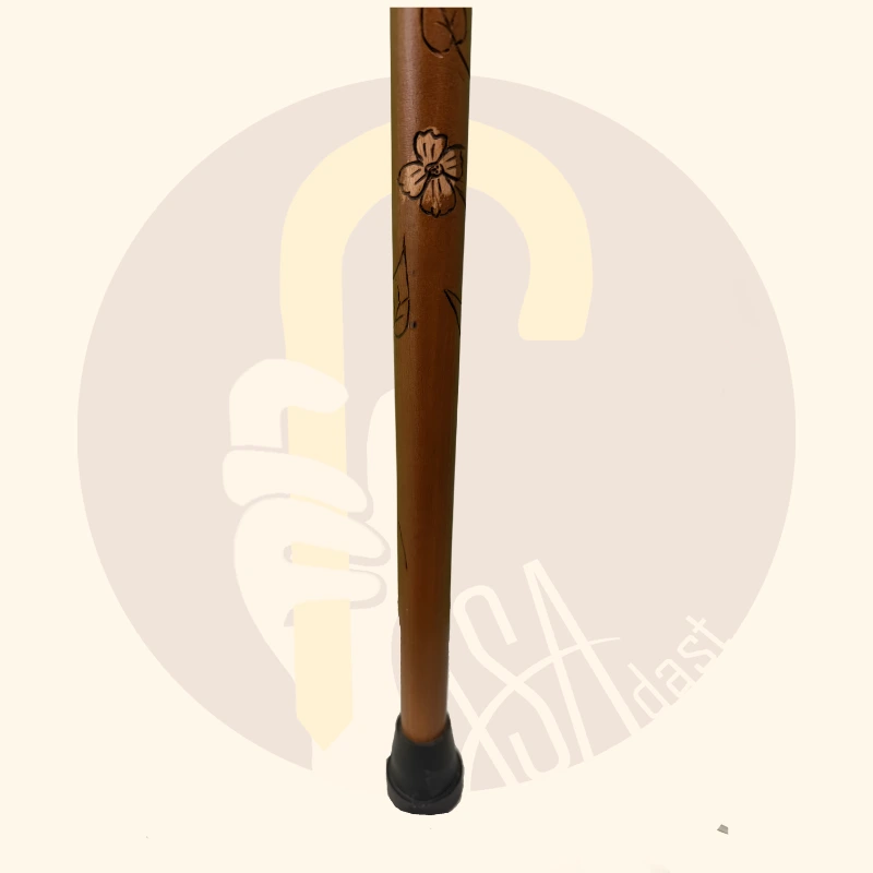 بدنه این عصای دستساز از چوب گردوی طبیعی و مرغوب منطقه الموت تهیه شده است؛ چوبی ارزشمند که به دلیل بافت متراکم، استقامت بالا، مقاومت در برابر فشار و عمر طولانی، یکی از بهترین انتخابها برای ساخت عصای چوبی حرفهای محسوب میشود. نقشونگار طبیعی چوب گردو، جلوهای گرم و زنده به عصا بخشیده و آن را از محصولات صنعتی و ماشینی کاملاً متمایز میکند.