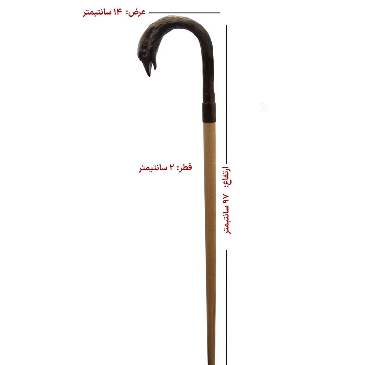 دسته عصای پیش رو با نقش این نماد قدرت ، از جنس برنج ساخته، با رنگ برنزی آب کاری و بر فراز چوبی خوش تراش و محکم قرار گرفته تا ترکیبی بی نظیر از زیبایی و قدرت را برای دربر گیرنده اش فراهم آورد .