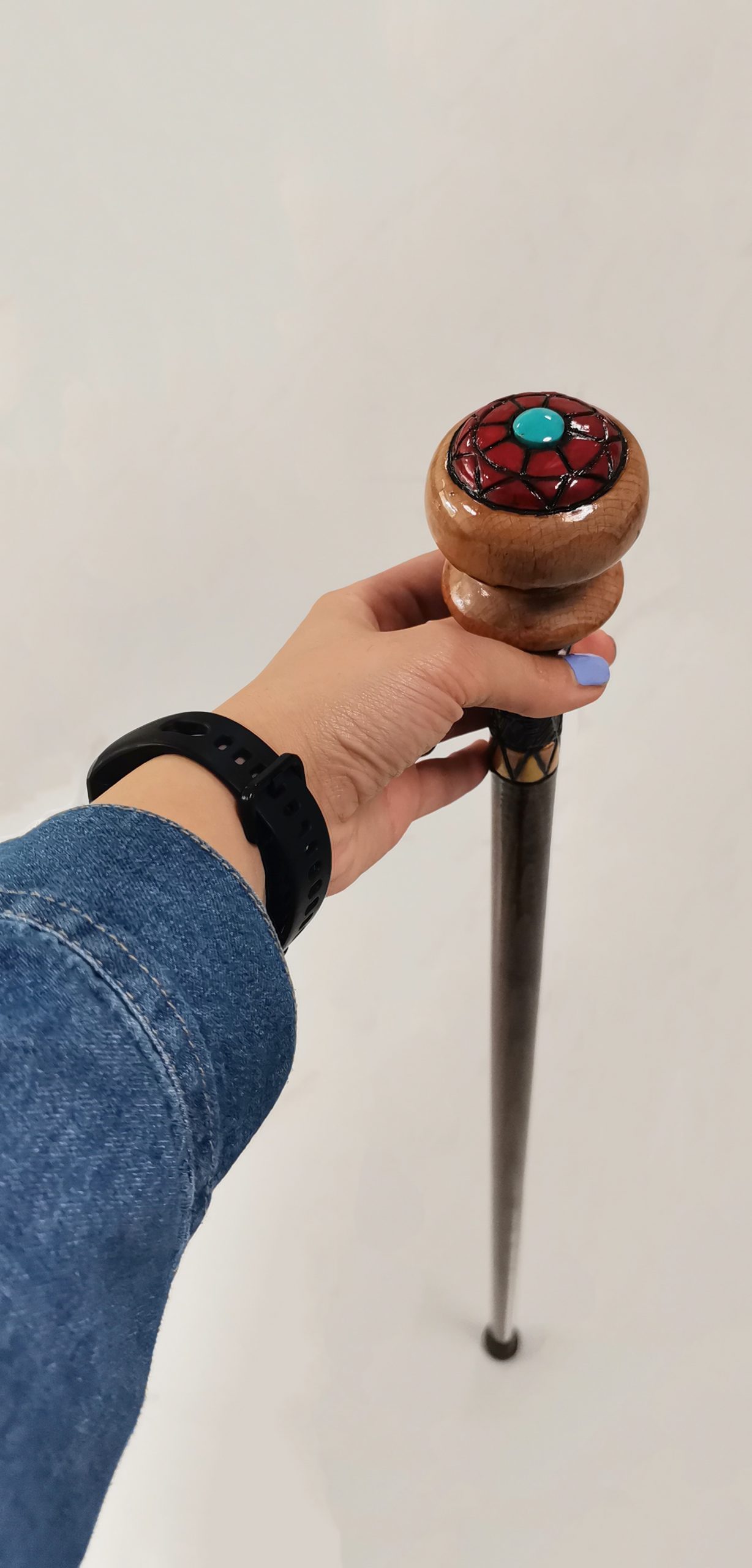 عصای فیروزه کاری والکس کین تنه قهوه کد 180 یکی از خاص ترین و خیره کننده ترین عصاهای گالری عصا دست محسوب می شود.