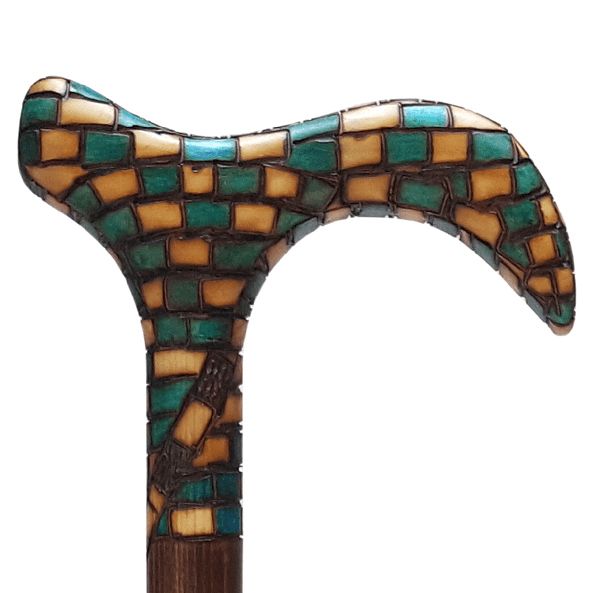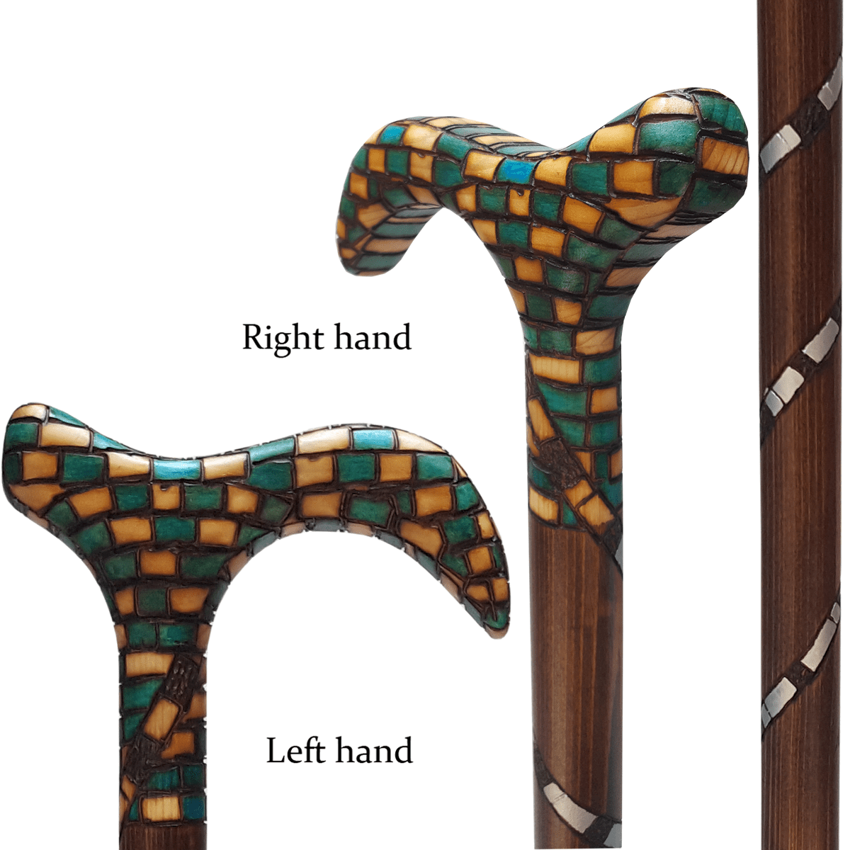 - رنگ این چوب ، سبز پرشین ترکیب با گردویی تیره در بدنه عصا میباشد.این چوب به علت سبکی ،استحکام بالا و ضدآب بودن از بهترین چوب ها برای ساخت عصا های طرح دار ، طبی و خاص میباشد. در کشور ما این چوب غالبا در صنایع دستی استفاده می شود. خاص بودن طرح و رنگ این عصا در حین داشتن کیفیت عالی و طبی بودن آن مهمترین مشخصه آن است .