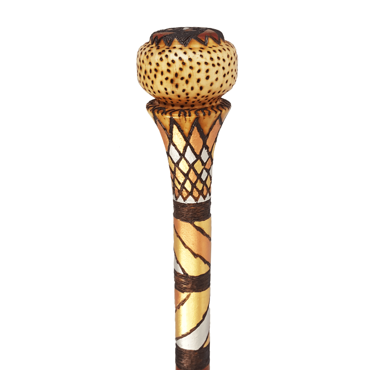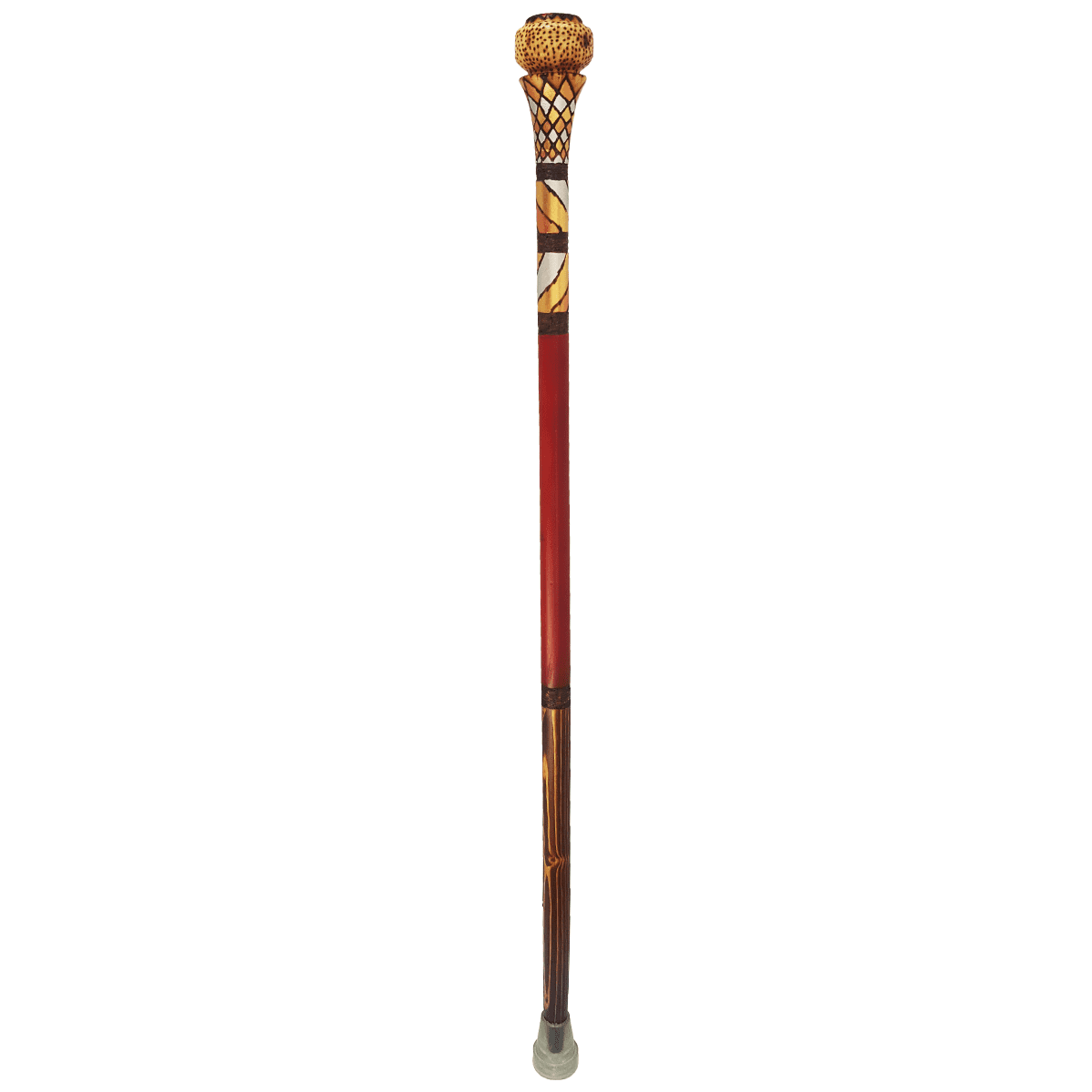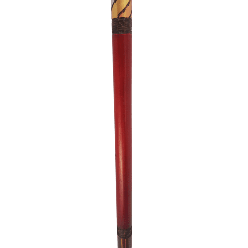 - عصا گلپوران کد 484 دسته شاهی از جنس چوب گردو در دسته این عصا یکی از عصاهای خاظ عصادست میباشد. در تمام دسته این عصا از هنر قلمه زنی واستفاده شده و ترکیب آن با رنگ رزی با رنگ های مختلف دیده میشود. بدنه این عصا به دو قسمت رنگ خود چوب و زرشکی تقسیم میشود.