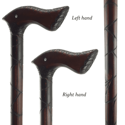 دسته عصای پیش رو با نقش این نماد قدرت ، مزین و بر فراز  چوبی خوش تراش و محکم با رنگ قهوه ای قرار گرفته تا ترکیبی بی نظیر از زیبایی و قدرت را برای دربر گیرنده اش فراهم آورد .