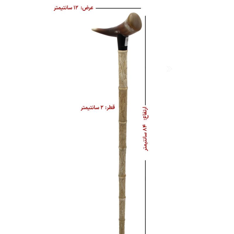 بدنه این عصا از استخوان طبیعی قلمزنی شده با نقوش الهامگرفته از افسانههای کهن ساخته شده است که داستان سیر تکامل بشر و قدرت یافتن انسان را روایت میکنند. دسته آن نیز از شاخ قوچ صیقل دادهشده ساخته شده و جلوهای باشکوه و سلطنتی به این اثر بخشیده است.